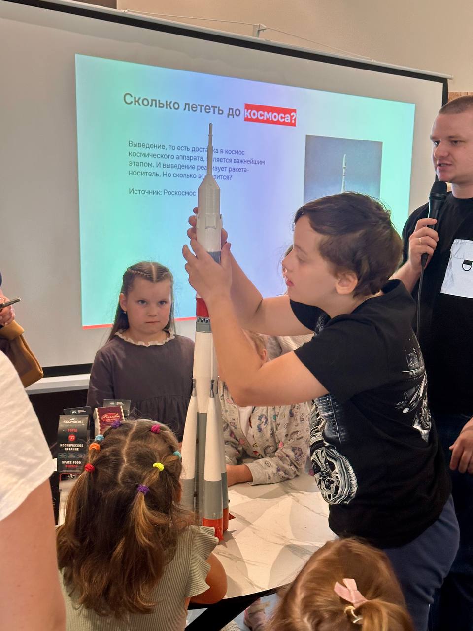 Детскому восторгу и восхищению не было предела! 🤗Маленькие ученые приняли участие в викторине, попробовали ту самую еду в тюбиках и космический хлеб, 🚀и конечно же попробовали себя в роли писателей-фантастов, напечатав свои первые строки на печатной машинке!💫